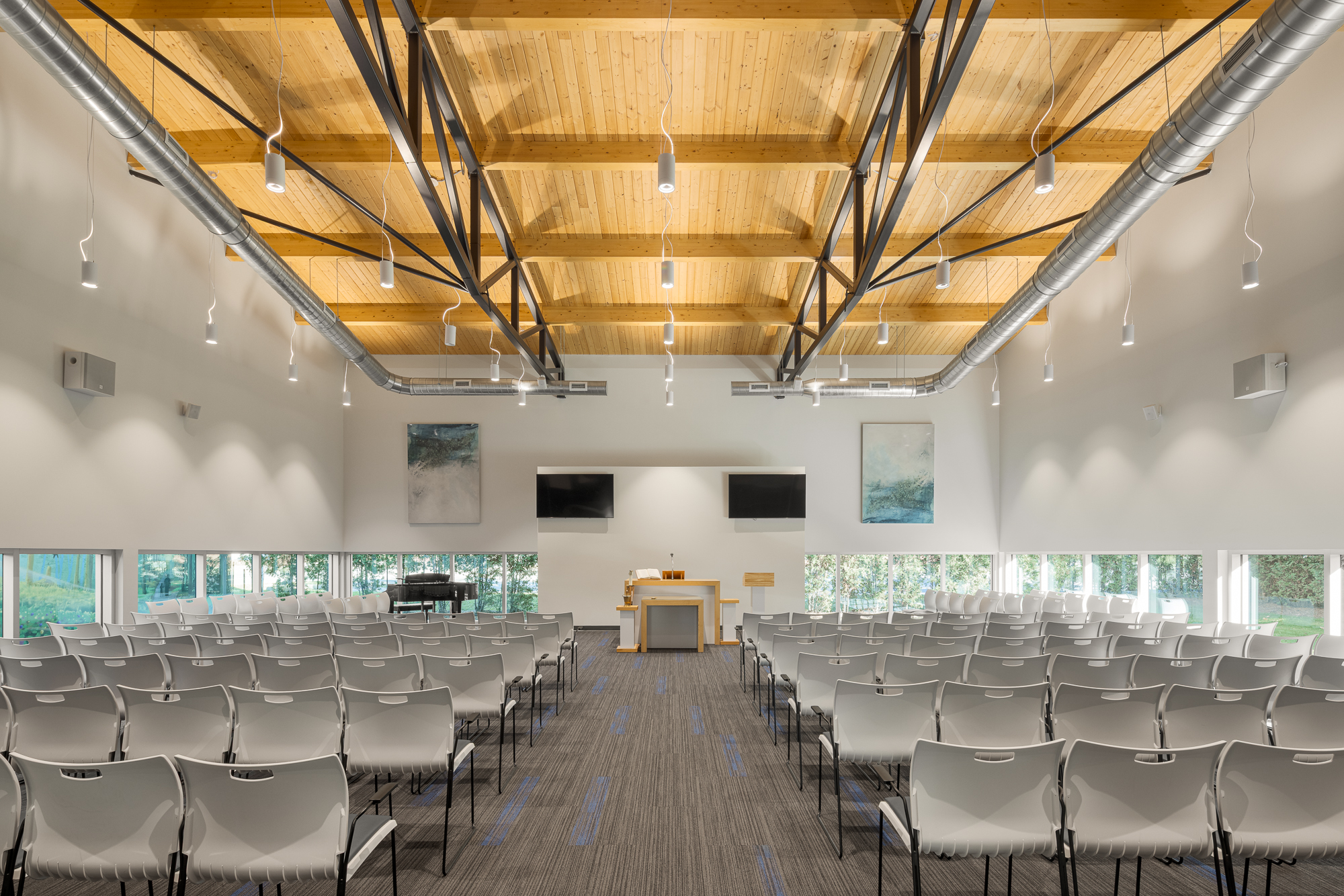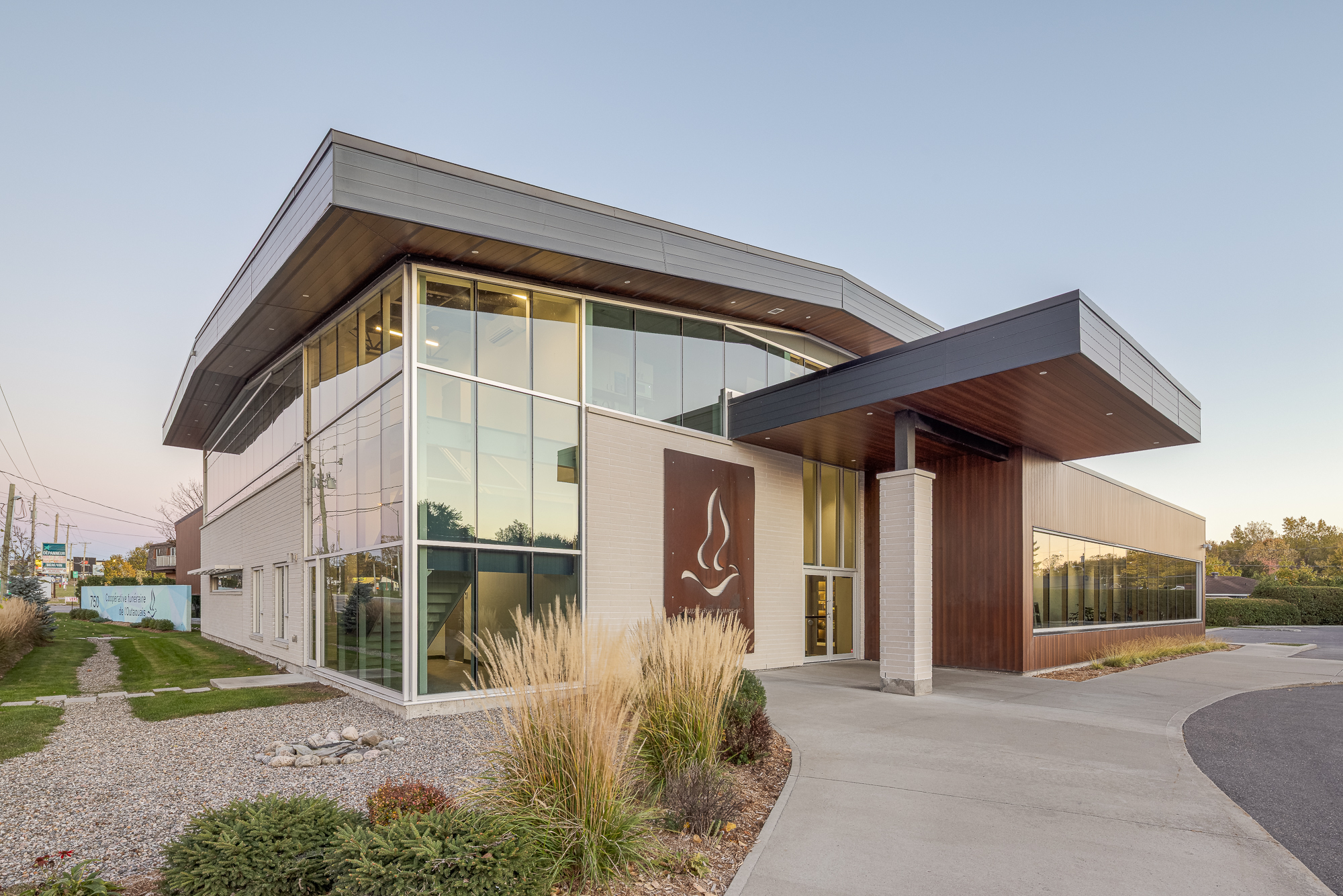 Le complexe multifonctionnel de la Coopérative funéraire de l’Outaouais, le Pavillon du Lac-Beauchamp, s’intègre harmonieusement à l’environnement naturel qui l’entoure.